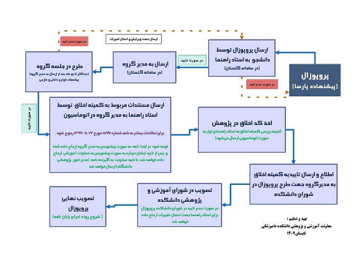 نحوه بررسی و اقدام برای تصویب پروپوزال (پیشنهاده پارسا) در دانشکده