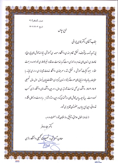 عضو هیئت علمی دانشکده دامپزشکی دانشگاه رازی در جمع پژوهشگران یک درصد برتر جهان قرار گرفت